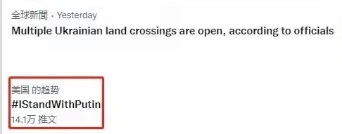 支持俄羅斯、支持普京的詞條甚至登上過(guò)推特?zé)崴寻竦那傲小?/p>