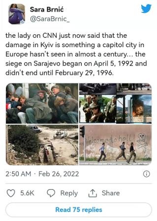 △塞爾維亞網(wǎng)友痛斥美媒無(wú)知:美國(guó)有線電視新聞網(wǎng)(CNN)說(shuō)基輔受到的破壞是歐洲首都城市近百年所未見(jiàn),但薩拉熱窩在90年代可是被圍困了四年之久。