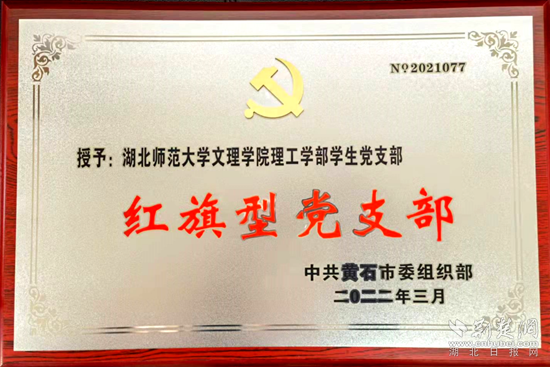 荊楚網(wǎng)(湖北日報網(wǎng))訊(通訊員 余復(fù)軍)近日,黃石市委組織部下發(fā)通報,表彰2021年度全市先進黨組織。其中,湖北師范大學(xué)文理學(xué)院理工學(xué)部學(xué)生黨支部被評為黃石市2021年度“紅旗型黨支部”。