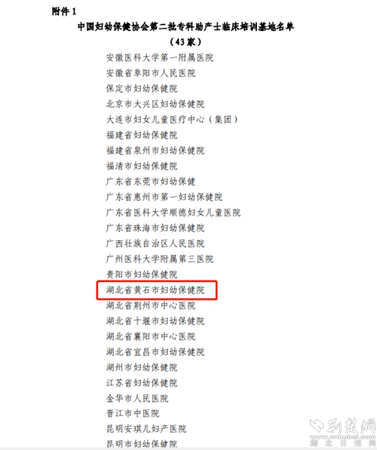荊楚網(wǎng)(湖北日?qǐng)?bào)網(wǎng))訊(通訊員 王沁、張姣姣)3月23日,中國(guó)婦幼保健協(xié)會(huì)公布“第二批專(zhuān)科助產(chǎn)士臨床培訓(xùn)基地”名單,黃石市婦幼保健院名列其中,正式成為“中國(guó)婦幼保健協(xié)會(huì)專(zhuān)科助產(chǎn)士臨床培訓(xùn)基地”,標(biāo)志著黃石市婦幼保健院專(zhuān)科助產(chǎn)士臨床培訓(xùn)工作邁上新臺(tái)階。