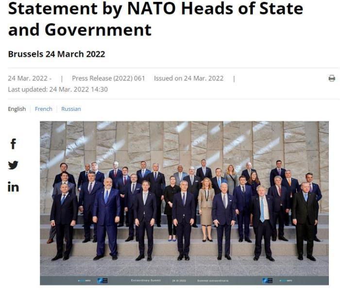中新網(wǎng)3月24日電 當(dāng)?shù)貢r間24日,北約成員國在比利時布魯塞爾舉行峰會,主要就俄烏局勢進行了討論。會后的聯(lián)合聲明指出,北約將對烏克蘭提供進一步援助,并計劃在東歐多國增兵。