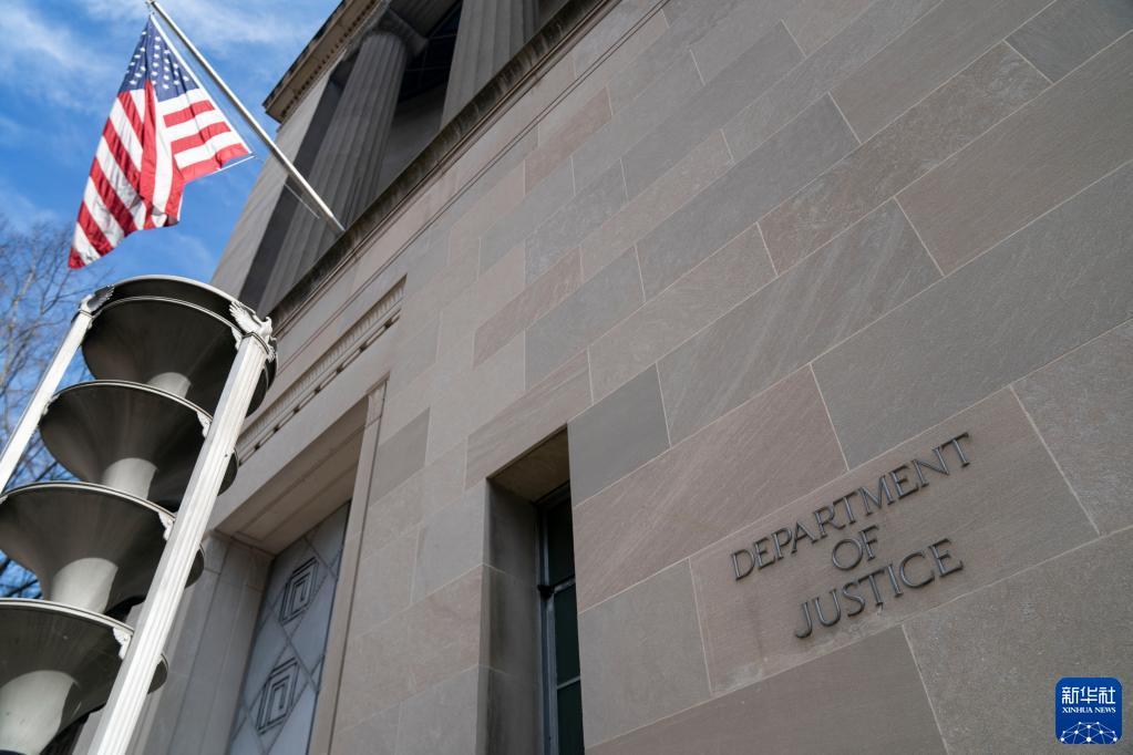 這是3月10日在美國首都華盛頓拍攝的美國司法部大樓。新華社記者 劉杰 攝