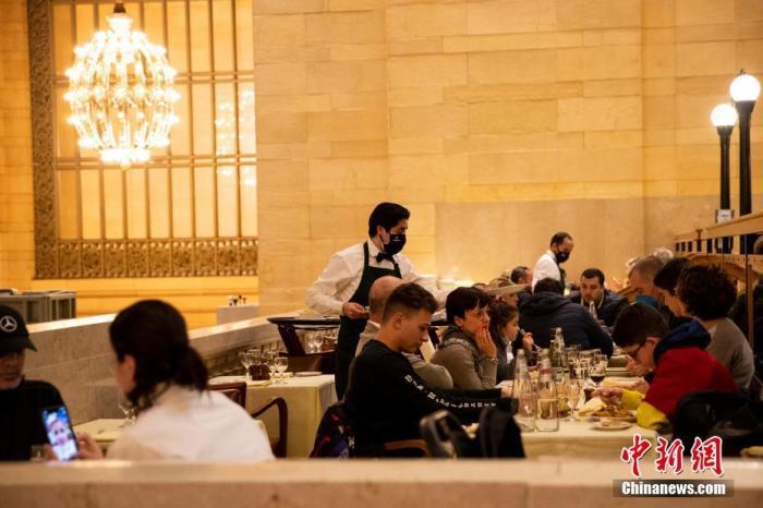 資料圖:美國紐約中央車站一家餐廳,上座率相比平日未有減少。 中新社記者 廖攀 攝