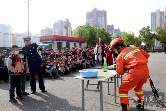 荊楚網(wǎng)(湖北日?qǐng)?bào)網(wǎng))訊(通訊員寧?kù)o)3月28日是第27個(gè)“全國(guó)中小學(xué)生安全教育日”。當(dāng)天,黃石開發(fā)區(qū)·鐵山區(qū)四棵小學(xué)百余名學(xué)生在老師的帶領(lǐng)下,走進(jìn)“紅門”與消防員進(jìn)行了零距離接觸,度過了一個(gè)與眾不同的安全教育日。