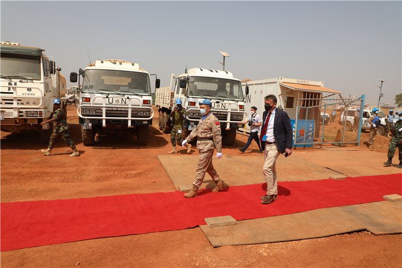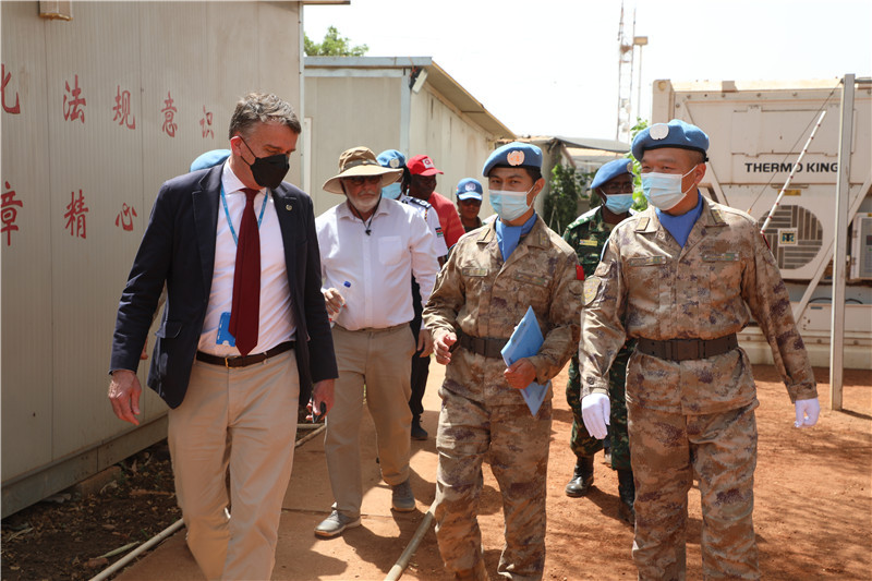桑德斯首先檢閱了部隊(duì),隨后與聯(lián)阿安全部隊(duì)官員一同觀看了介紹分隊(duì)全面工作情況的視頻短片,參觀了官兵生活圖片展板,到官兵宿舍和分隊(duì)醫(yī)院進(jìn)行了實(shí)地察看。