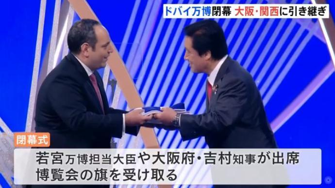 中新網(wǎng)4月1日電 據(jù)日本TBS電視臺(tái)報(bào)道,當(dāng)?shù)貢r(shí)間3月31日,“2022迪拜世博會(huì)”閉幕。閉幕式上,日本世博大臣和大阪府知事接過了會(huì)旗,下一屆世博會(huì)將于2025年在日本大阪舉行。