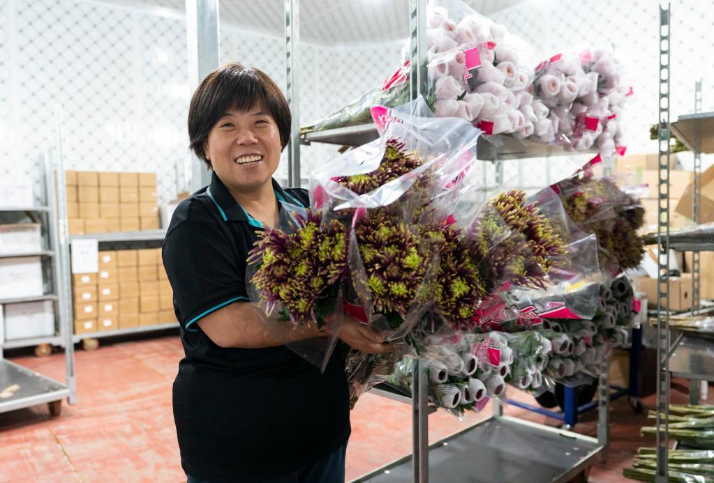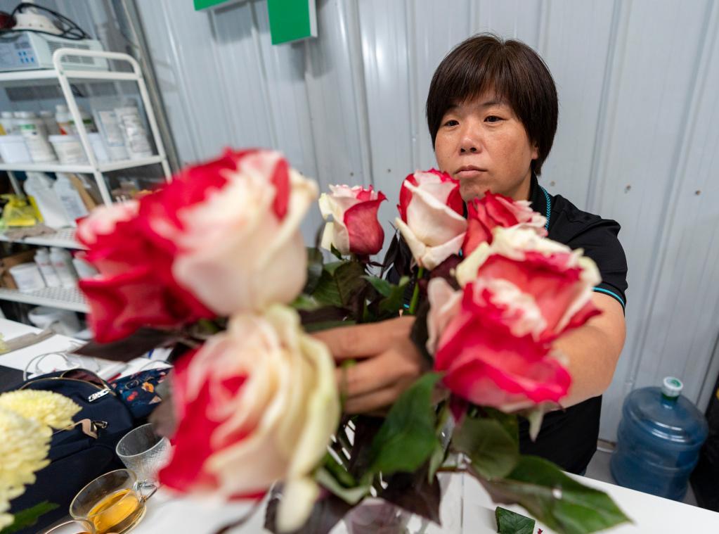 3月24日,陳林在位于昆明斗南的辦公點打理玫瑰花。新華社記者陳欣波攝