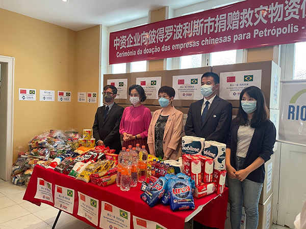 人民網(wǎng)里約熱內(nèi)盧4月7日電 (記者畢夢(mèng)瀛)由巴西中資企業(yè)協(xié)會(huì)和里約互助會(huì)聯(lián)合舉辦的中資企業(yè)向彼得羅波利斯市捐贈(zèng)救災(zāi)物資儀式7日舉行。里約州長(zhǎng)夫人、里約互助會(huì)榮譽(yù)主席安娜利內(nèi)·卡斯特羅,駐里約熱內(nèi)盧總領(lǐng)事田敏,團(tuán)結(jié)里約機(jī)構(gòu)主席海洛伊莎·阿吉亞爾,巴西中資企業(yè)代表等出席。