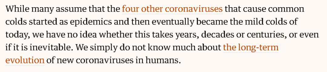 另外,即便是現(xiàn)在人類已知的只會引發(fā)普通感冒的四種冠狀病毒,從前也可能引發(fā)過大疫情,但人們并不知道它們變異到如今的地步耗費了多長時間——是數(shù)年、數(shù)十年,還是數(shù)個世紀。