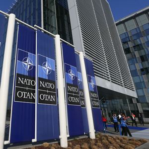 3月24日,工作人員在比利時布魯塞爾的北約總部忙碌。新華社記者鄭煥松攝