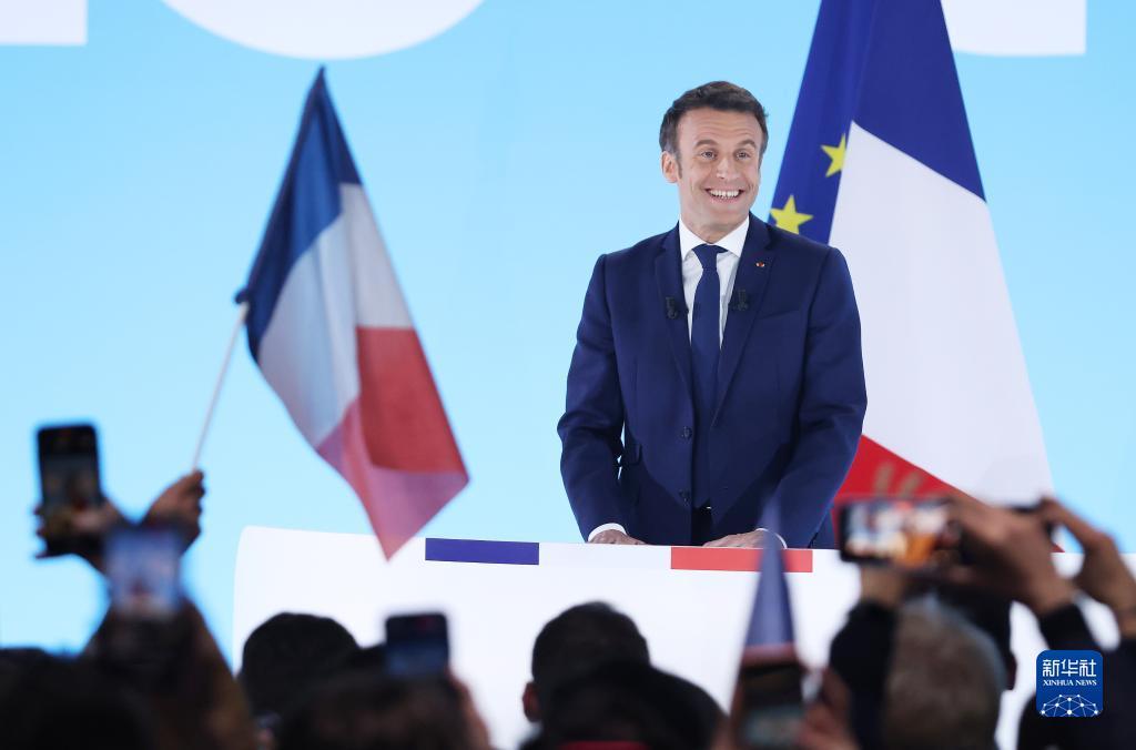 4月10日,法國總統(tǒng)馬克龍在巴黎參加總統(tǒng)選舉首輪投票后的集會。新華社記者 高靜 攝