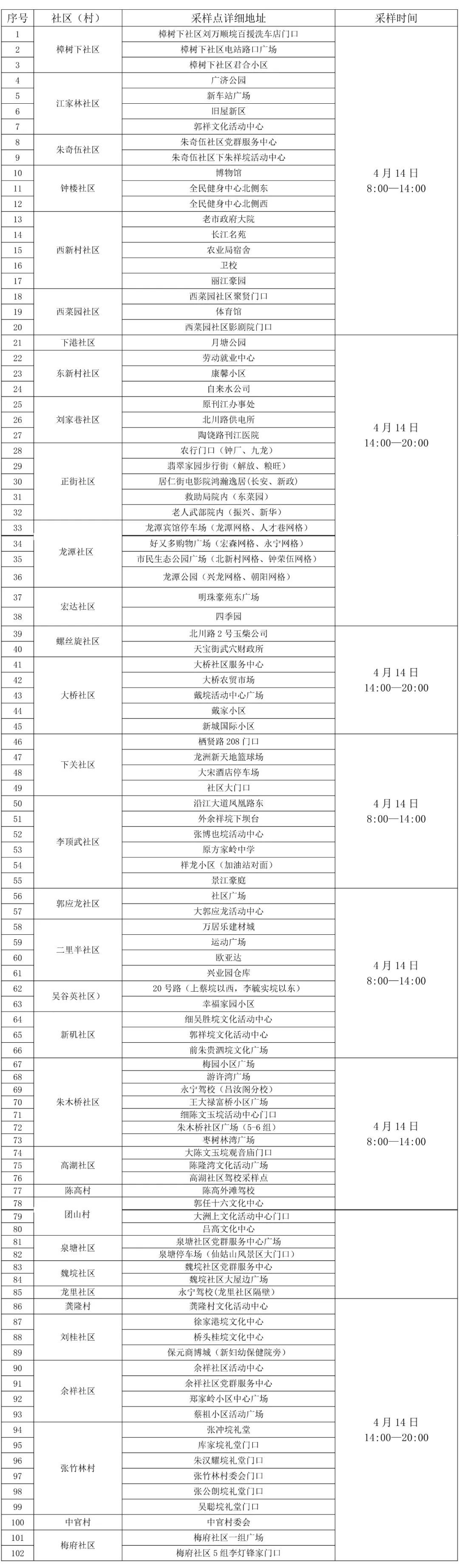 2.請廣大市民朋友按照所在社區(qū)(村組)通知的時間和地點,分時段、分區(qū)域有序前往現(xiàn)場采樣(采樣點設置表附后)。