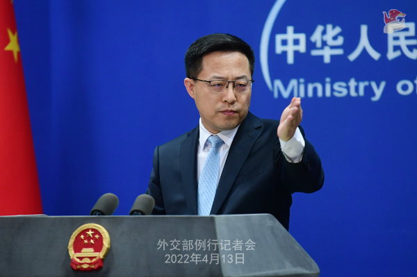 人民網(wǎng)北京4月13日電 據(jù)外交部網(wǎng)站消息,外交部發(fā)言人趙立堅(jiān)主持13日記者會(huì)。記者會(huì)實(shí)錄如下:
