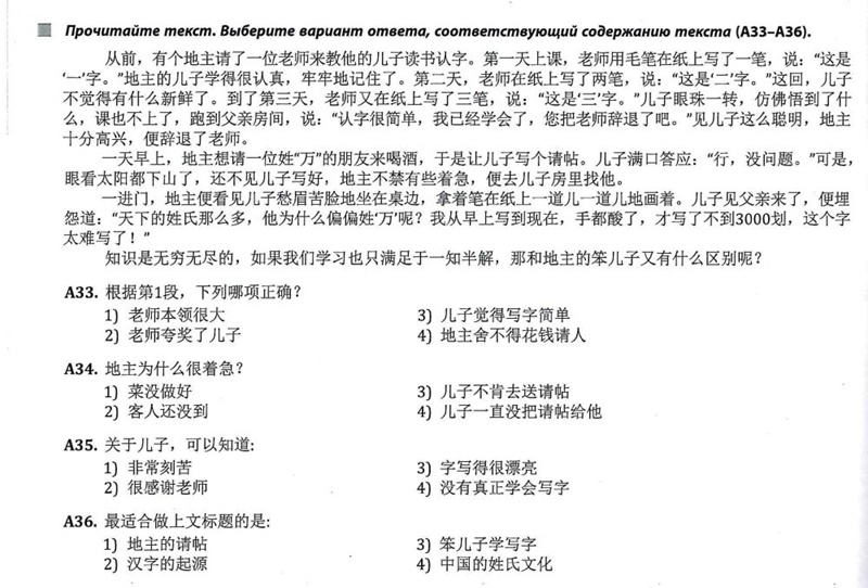 白俄羅斯的中文高考題型包括選擇、填空、閱讀理解等。