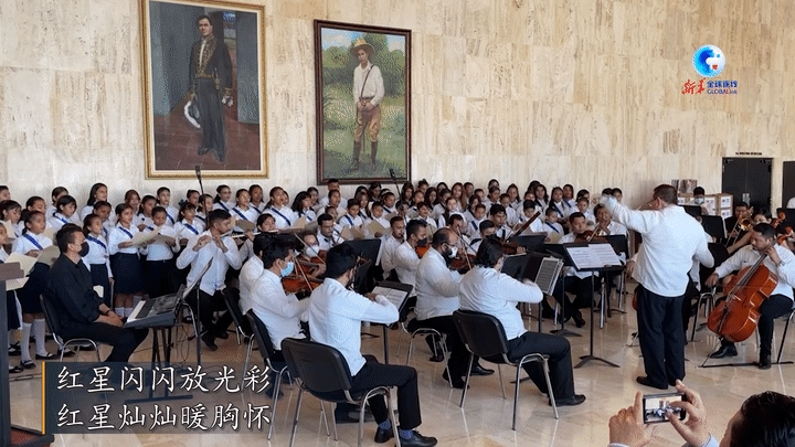 由80名尼加拉瓜小學(xué)生組成的國(guó)家劇院兒童合唱團(tuán),在交響樂(lè)隊(duì)的伴奏下用中文演唱了《紅星閃閃》《歌唱祖國(guó)》這兩首膾炙人口、經(jīng)久不衰的中國(guó)歌曲。對(duì)于中文“零基礎(chǔ)”的孩子們來(lái)說(shuō),在短短一周時(shí)間內(nèi)學(xué)唱中文歌并登臺(tái)演出,無(wú)疑是一場(chǎng)挑戰(zhàn)。