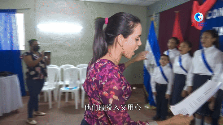 尼加拉瓜教育部學(xué)生合唱團(tuán)和管弦樂(lè)團(tuán)學(xué)術(shù)負(fù)責(zé)人埃麗卡·賽加斯在此次中文歌學(xué)唱過(guò)程中扮演了合唱團(tuán)指揮的角色,她對(duì)孩子們的學(xué)唱進(jìn)度之快感到驚訝。
