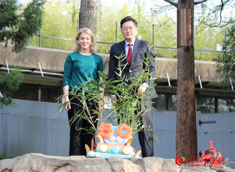 人民網(wǎng)華盛頓4月16日電 (記者李志偉)當(dāng)?shù)貢r間4月16日,美國史密森學(xué)會國家動物園舉行大熊貓抵美50周年慶?;顒?,這是該動物園大熊貓項目50周年系列慶?;顒又?。中國駐美國大使秦剛出席活動并致辭。