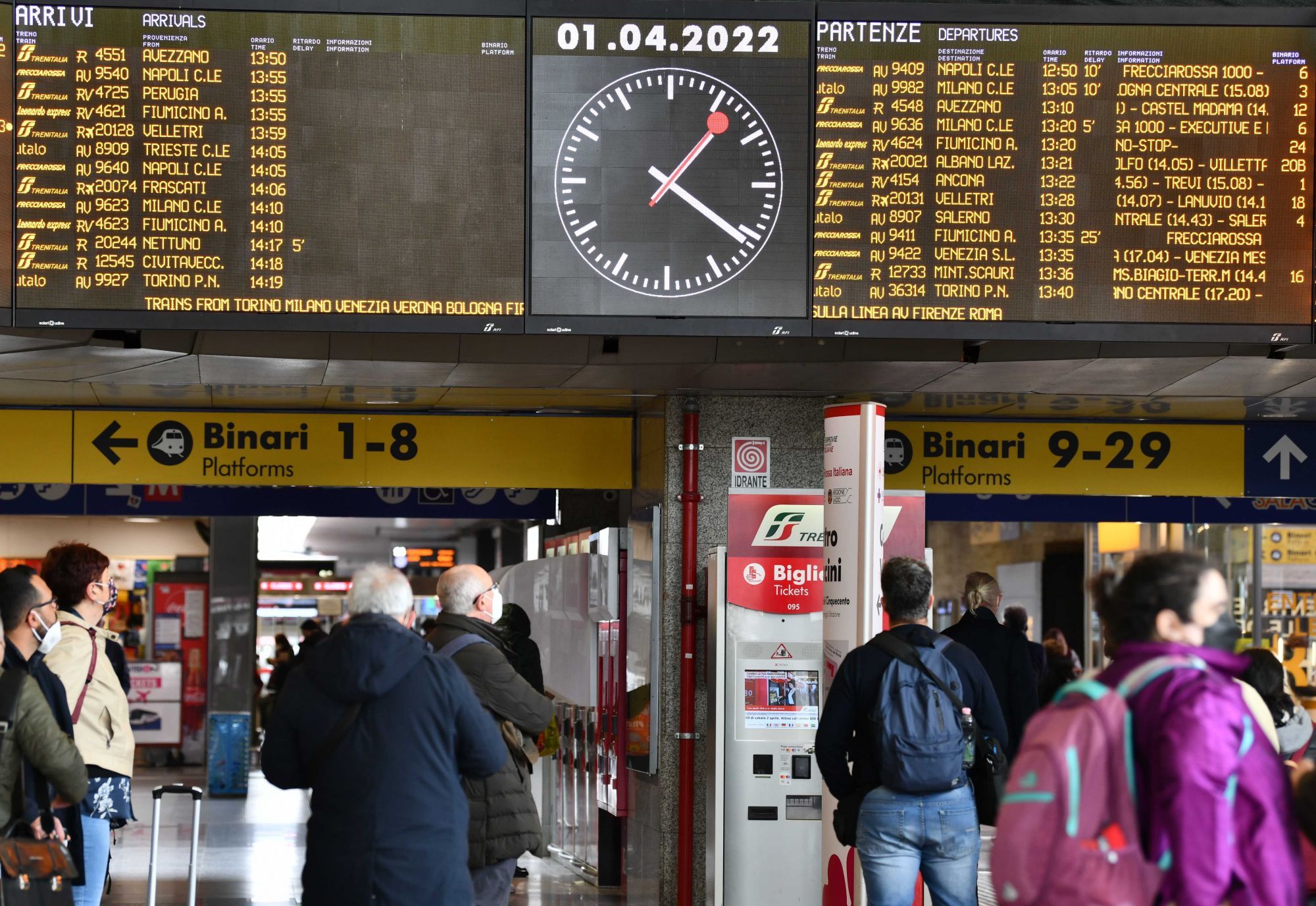 2022年4月1日,旅客在意大利羅馬特米尼火車站了解列車信息。(新華社記者金馬夢妮攝)
