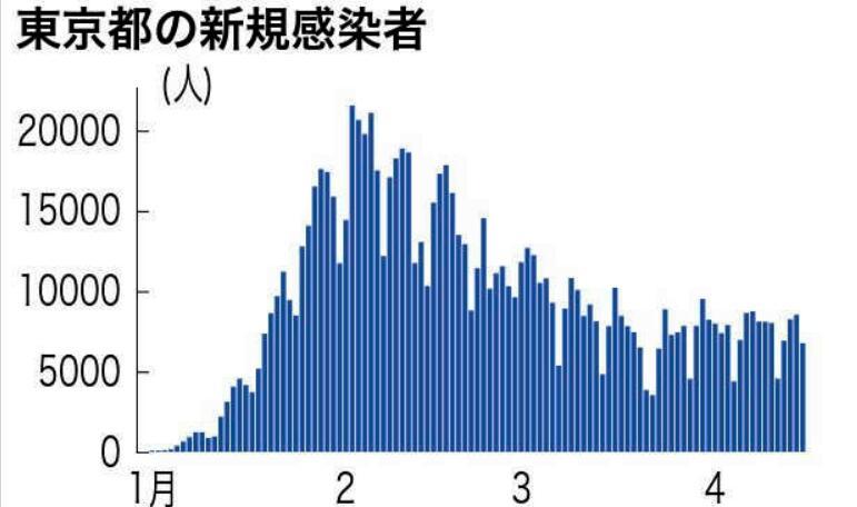 4月18日,東京都新增確診病例3479例,與上周一相比減少了1083例,連續(xù)七天呈下降趨勢(shì)。截至4月17日,東京都最近一周的日均新增確診病例數(shù)為6568.4例,是前一周的86.5%。