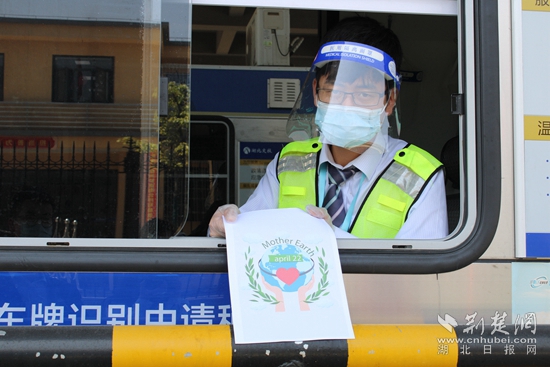 “大哥,今天是世界地球日,我們一起比心地球,節(jié)能減排,愛護(hù)家園!”收費(fèi)員熱情遞給過往司乘“比心地球”宣傳彩頁,倡導(dǎo)低碳生活新風(fēng)尚,共建生態(tài)文明新家園。
