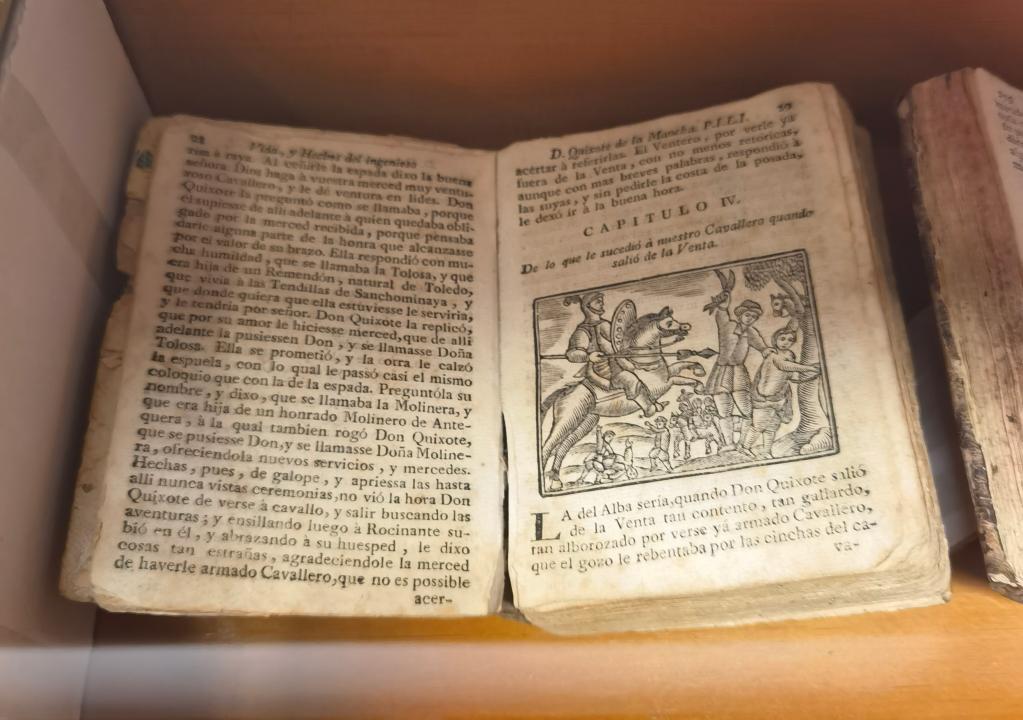 塞萬提斯博物館收藏的1755年出版的《堂吉訶德》小說。新華社記者馮俊偉攝