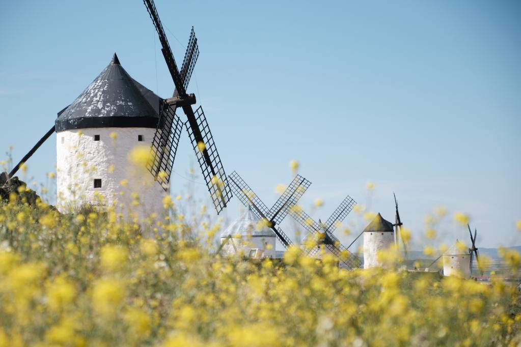 這是4月16日在西班牙孔蘇埃格拉拍攝的風(fēng)車。新華社記者孟鼎博攝