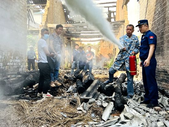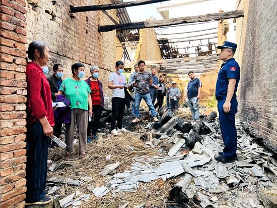在火災(zāi)警示課現(xiàn)場,消防宣傳人員組織居民走進火災(zāi)事故現(xiàn)場,深入著火部位近距離感受火災(zāi)現(xiàn)場情況,體驗火災(zāi)事故的危險性、破壞性,并向村民們介紹了火災(zāi)發(fā)生時間、原因以及處置初期火災(zāi)方法、火場逃生方法。