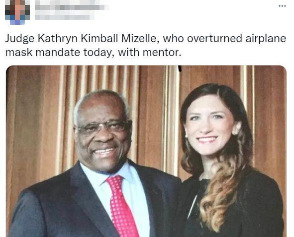 有網(wǎng)友曬出米澤勒與美國最高法院大法官托馬斯的合照。圖片來源:推特網(wǎng)頁截圖