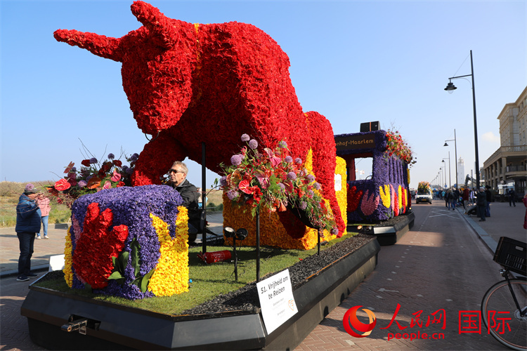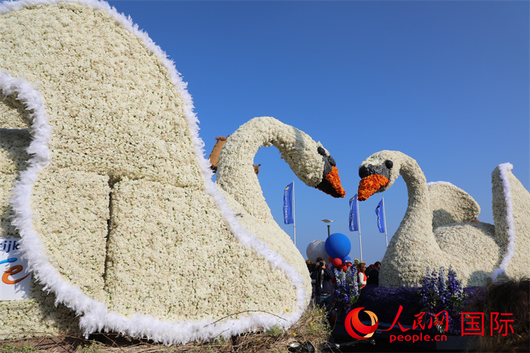 | 荷蘭花車巡游活動中造型各異的花車。人民網記者 張朋輝攝 |