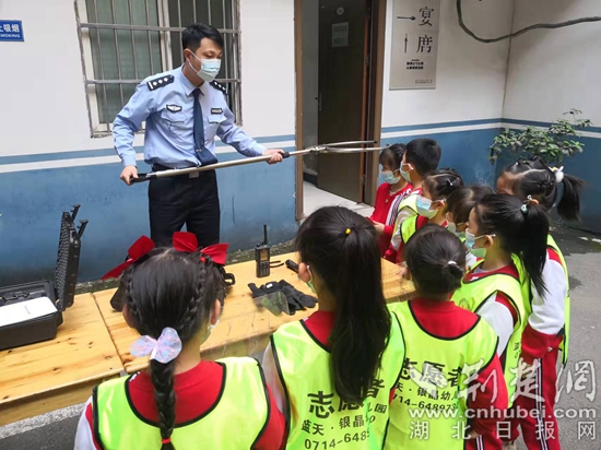 民警向孩子們展示警用裝備。通訊員 供圖