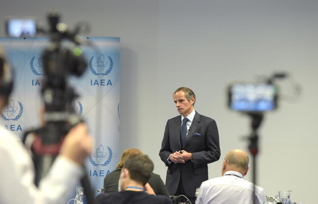 4月28日,國際原子能機構總干事格羅西在奧地利維也納舉行的新聞發(fā)布會上講話。新華社記者郭晨攝