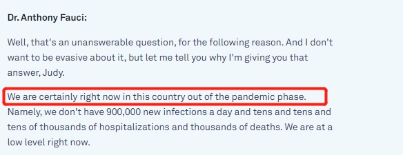 △26日,福奇在接受美國(guó)公共廣播電視公司(PBS)采訪時(shí)表示,美國(guó)已經(jīng)脫離了新冠大流行階段。