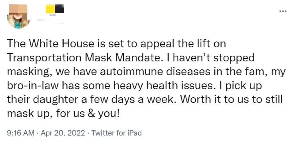 還有網(wǎng)友遺憾地表示,由于美國(guó)政府決定取消對(duì)航班的“口罩令”,她不能再乘飛機(jī),因此無(wú)法出席之前已安排好的活動(dòng)。
