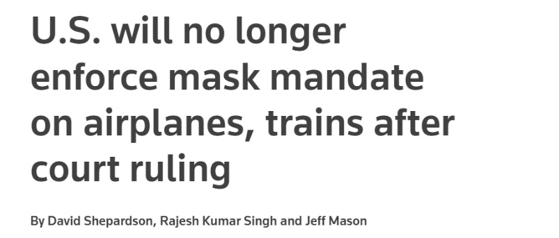 然而,這一禁令卻引發(fā)了美國(guó)社會(huì)的不滿。當(dāng)?shù)貢r(shí)間18日,美國(guó)佛羅里達(dá)州聯(lián)邦地區(qū)法院一法官裁定美政府推行了14個(gè)月的公共交通“口罩令”是非法的。隨后,拜登政府立即宣布,解除對(duì)乘坐公共交通工具的乘客必須佩戴口罩的強(qiáng)制要求。