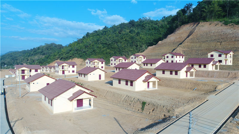 紅色的屋頂、黃色的墻壁,一片排列整齊的二層安居樓坐落在湄公河畔的青山綠水之間。剛剛搬入新家的村民們喜氣洋洋,遇到中國工程人員,就遠遠地豎起大拇指,孩子們在房前屋后和平整的道路邊嬉戲玩耍,歡笑聲在山谷中回蕩。