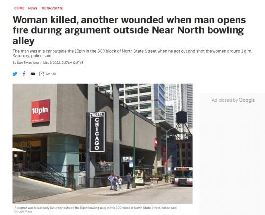 △芝加哥多起槍支暴力事件中的一起——在爭吵中一名男子開槍,導(dǎo)致一名女子身亡,另一人受傷