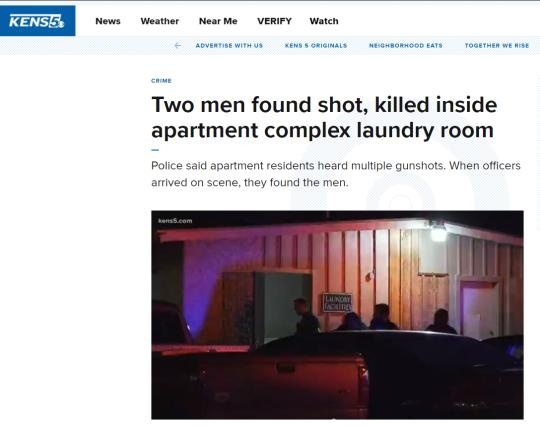 △圣安東尼奧市警方發(fā)現(xiàn)2名男子被槍殺于洗衣房內(nèi)