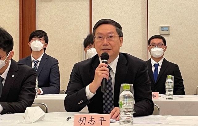 中國駐日本大使館公使銜參贊胡志平出席聯(lián)學(xué)活動并做現(xiàn)場點評。中國駐日本大使館教育處供圖