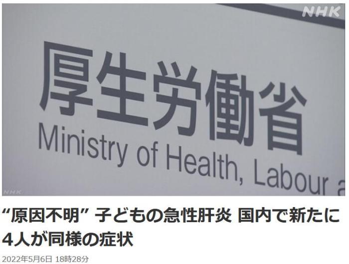 中新網(wǎng)5月6日電 據(jù)日本放送協(xié)會(huì)(NHK)報(bào)道,6日,日本厚生勞動(dòng)省稱,該國(guó)又有4名兒童被診斷為不明原因兒童急性肝炎。