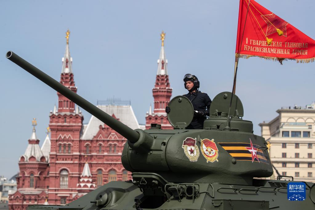 5月7日,在俄羅斯首都莫斯科,一輛T-34坦克駛過紅場。新華社記者 白雪騏 攝