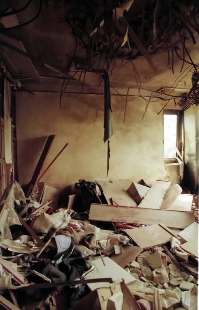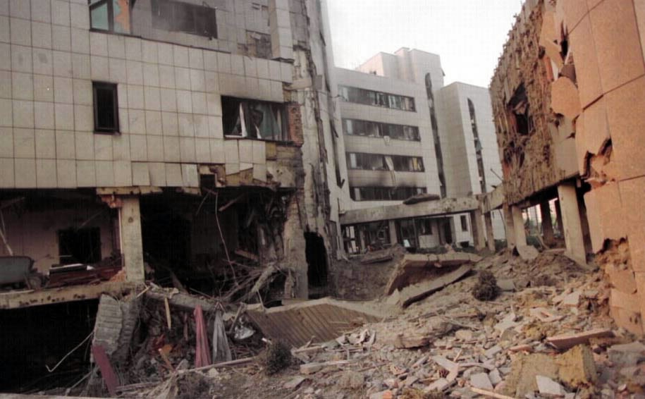 圖為坐落在中國駐南聯(lián)盟大使館院內(nèi)的大使官邸被北約導(dǎo)彈毀壞后的慘狀。新華社記者黃文攝