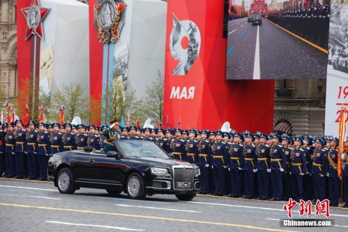 當(dāng)?shù)貢r間5月9日,俄羅斯在首都莫斯科紅場舉行紀(jì)念偉大衛(wèi)國戰(zhàn)爭勝利77周年閱兵式。共有1.1萬名軍人、131件現(xiàn)代化武器和軍事技術(shù)裝備在紅場接受了檢閱。圖為俄羅斯國防部長紹伊古乘車檢閱徒步受閱方隊。 中新社記者 田冰 攝