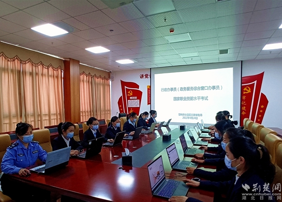4月24日,華容區(qū)行政審批局組織窗口工作人員參加行政辦事員考試。通訊員 供圖