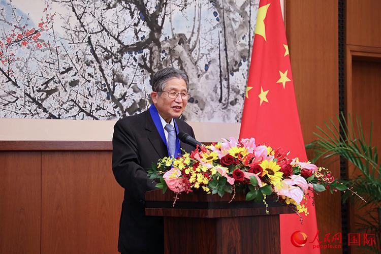 | 沖村憲樹在頒獎(jiǎng)儀式上發(fā)言。人民網(wǎng)記者 岳林煒攝 |