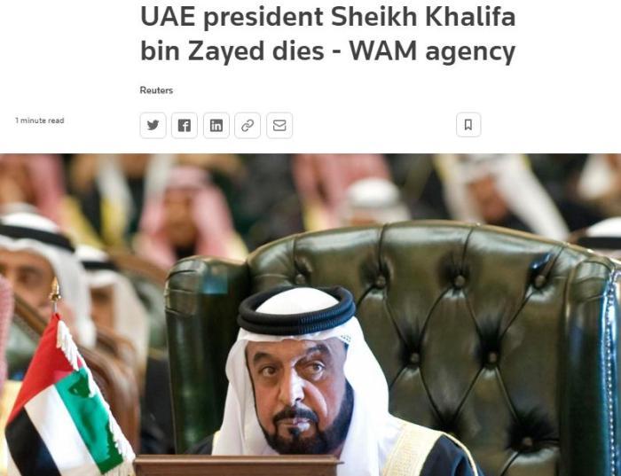 中新網(wǎng)5月13日電 綜合報(bào)道,當(dāng)?shù)貢r(shí)間5月13日,阿聯(lián)酋總統(tǒng)哈利法·本·扎耶德·阿勒納哈揚(yáng)去世,享年73歲。