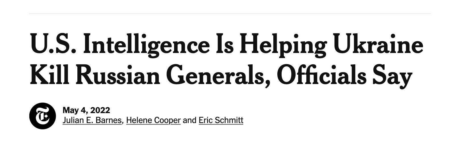 “有官員透露,美國(guó)情報(bào)正在幫助烏克蘭獵殺俄軍將領(lǐng)”。5月4日,《紐約時(shí)報(bào)》的這則報(bào)道,標(biāo)題直截了當(dāng),內(nèi)容吸引眼球。
