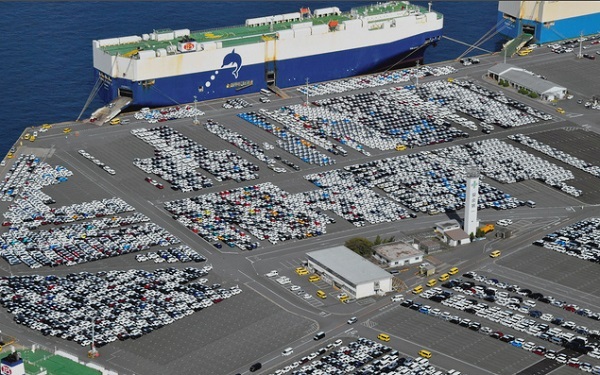 豐田汽車位于名古屋港的貨運基地。(圖片來源:《朝日新聞》)