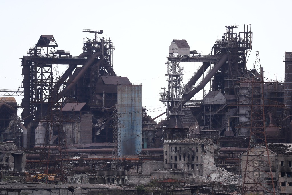 這是5月15日在馬里烏波爾拍攝的亞速鋼鐵廠。新華社發(fā)(維克托攝)