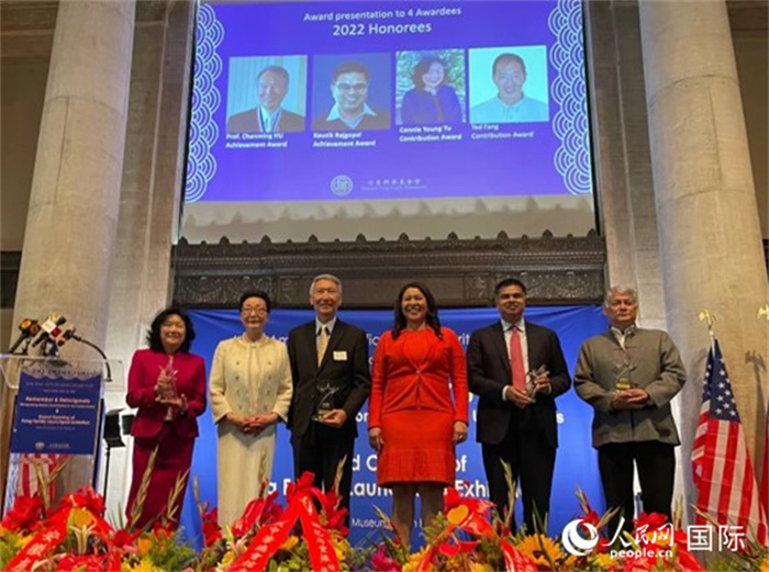 現(xiàn)場為4位突出貢獻亞裔頒獎。人民網(wǎng)記者 鄧圩攝