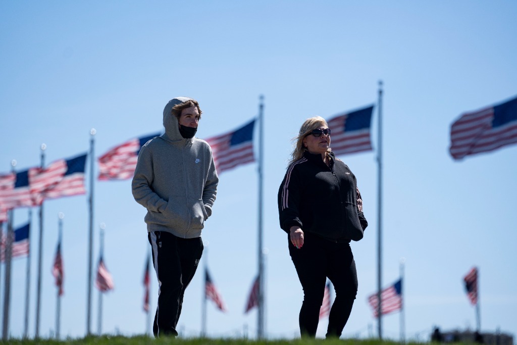 3月29日,行人走在美國首都華盛頓的國家廣場(chǎng)。新華社記者劉杰攝